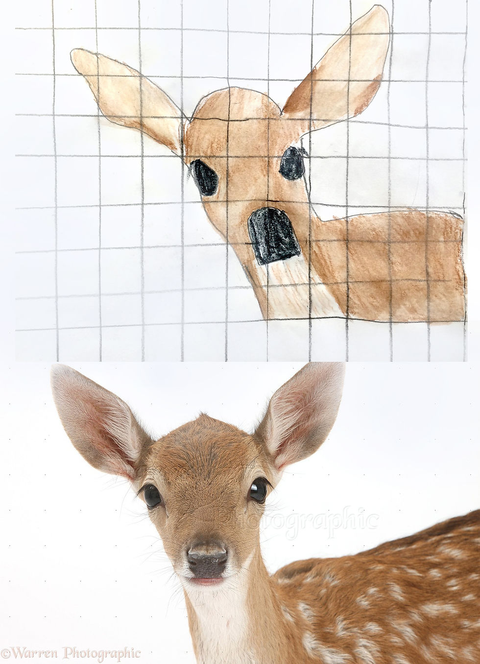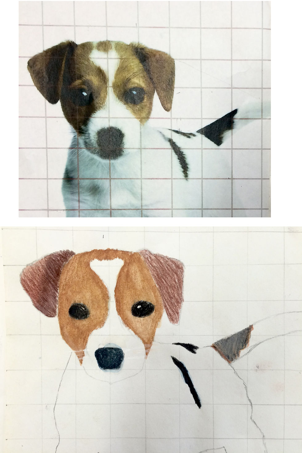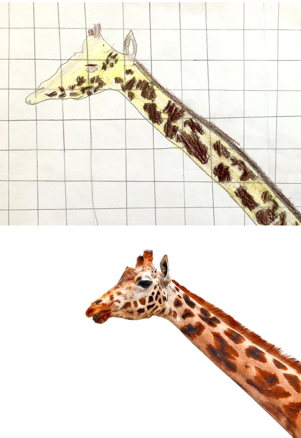 Sixth graders used grid lines to increase the size of an image while maintining its dimensions. This technique allowed students to focus on the positive and negative space within each square, to build the "big picture" more accurately, piece by piece. They used colored pencils to finalize their art, replicating the various shades, tints, and intensities of color in the image. These artists showed great focus and attention to detail!